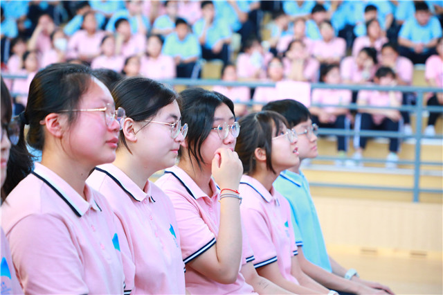 初三全体师生,学校和学部各级主管,七、八年级学弟学妹共同见证了这一神圣而又激动人心的时刻。本次典礼由九年级四位同学主持,并采取了同步直播的形式,让未能亲临现场的家长和社会各界朋友感受这温馨而难忘的时刻。