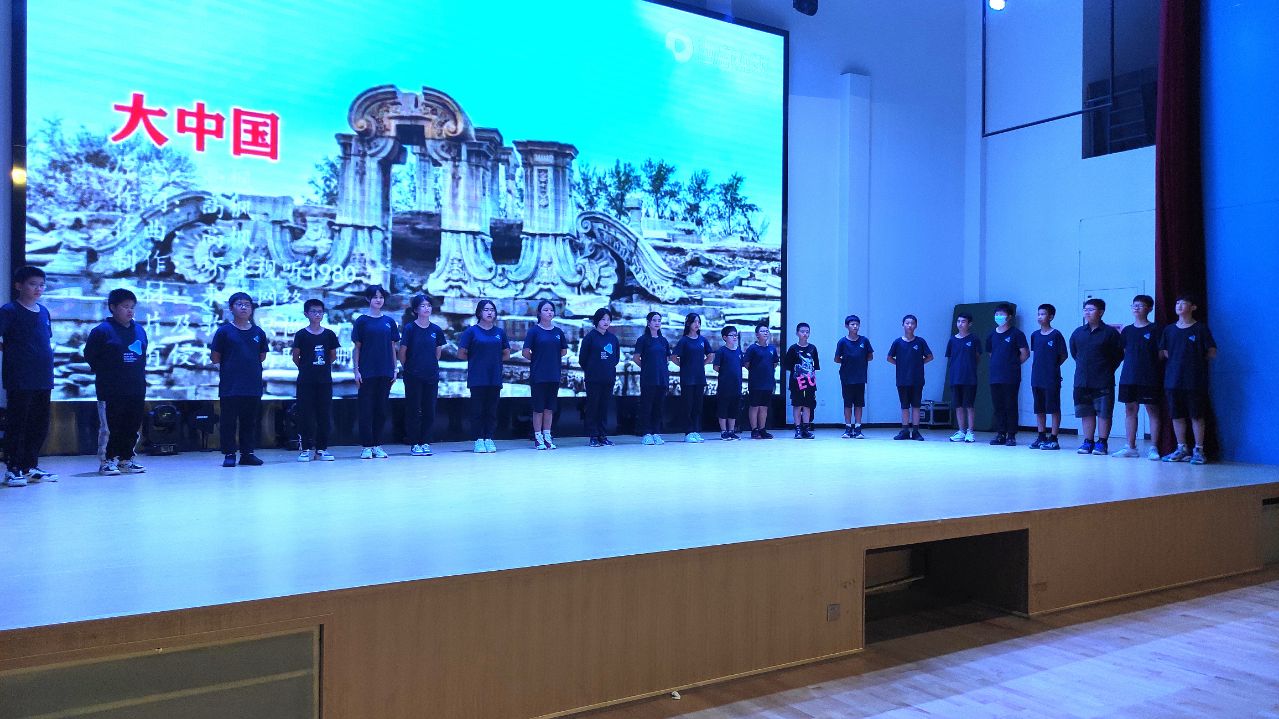 中国,一个令人骄傲的名字。我爱你——中国,我爱你的红色,我爱你的辽阔,我爱你的上下五千年。不管在何时何地我都以是一名中国人而感到骄傲和自豪。接下来是七(2)班同学带来的歌曲《大中国》。配合精彩的手语,穿插武术表演,展现出了新时代少年昂扬向上的精神风貌。