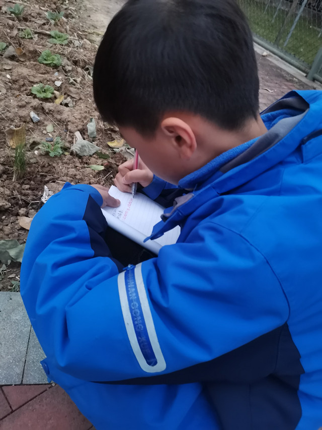 秋冬季的时令蔬菜种植品种有限,我们选择了种植周期性较短、生长较快的萝卜、菠菜、青菜和大蒜。为了能让蔬菜更好的生长,同学们都认真且有耐心的照顾自己所种的蔬菜。一丝不苟地松土、拔草、浇水……大家认真的观察并记录植物的生长。