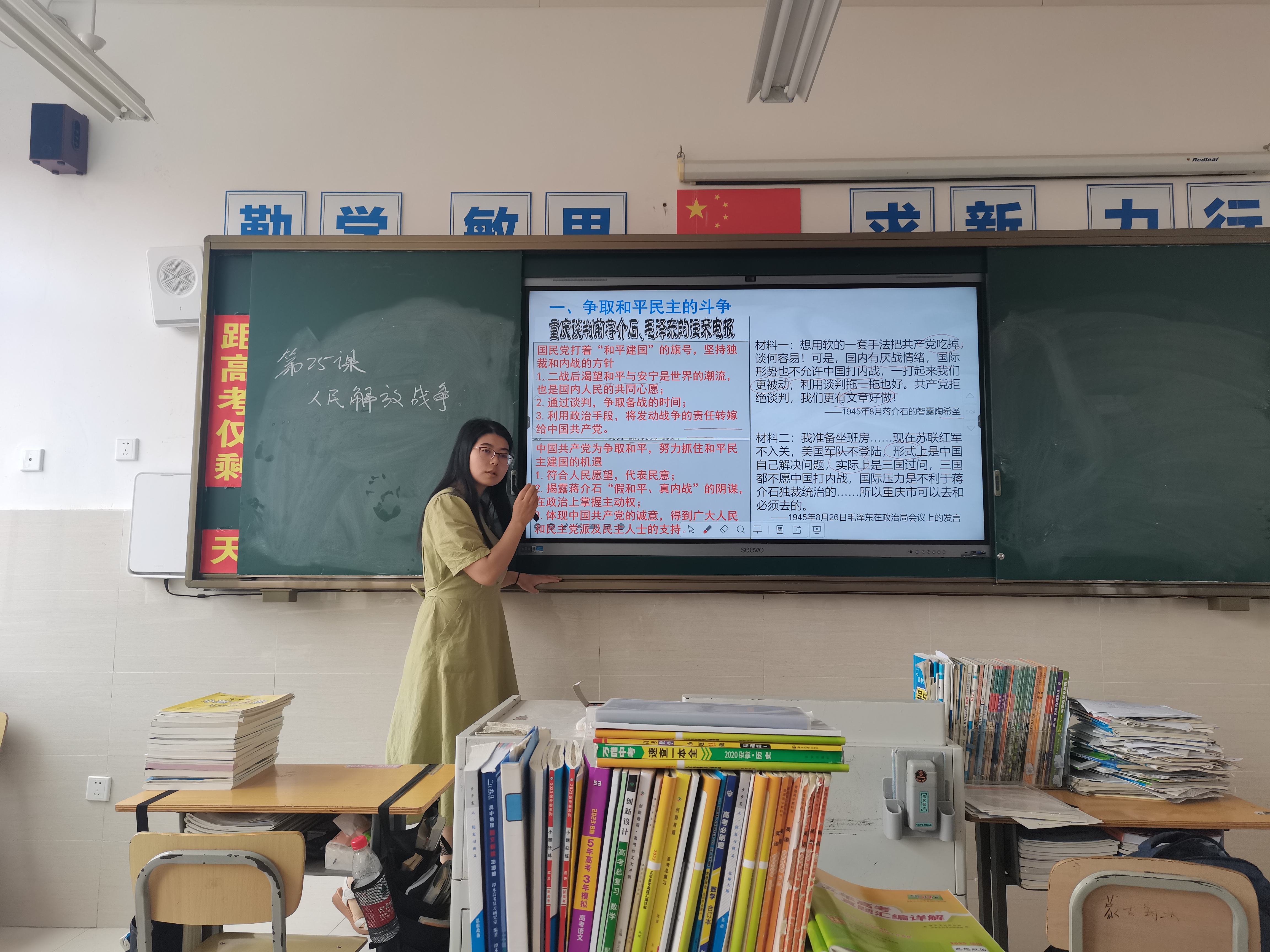 遴选活动按照市教育局文件精神着力落实,依据学科组活动方案有序推进,共有7名教师积极参加。根据初高中历史教材的不同,选择了初高中教材中的连接点作为备课和上课的课题,高中段:纲要上《第25课人民解放战争》,初中段:部编版八上《第24课人民解放战争的胜利》,7位教师虽分属不同学段,但在教学设计、无生上课等评比环节都能够立足学情,利用情境——问题驱动式教学,以饱满的精神状态,扎实的专业知识和灵活的教学手段有效设计和开展教学,充分体现出新课程教学理念和课程改革的新要求。