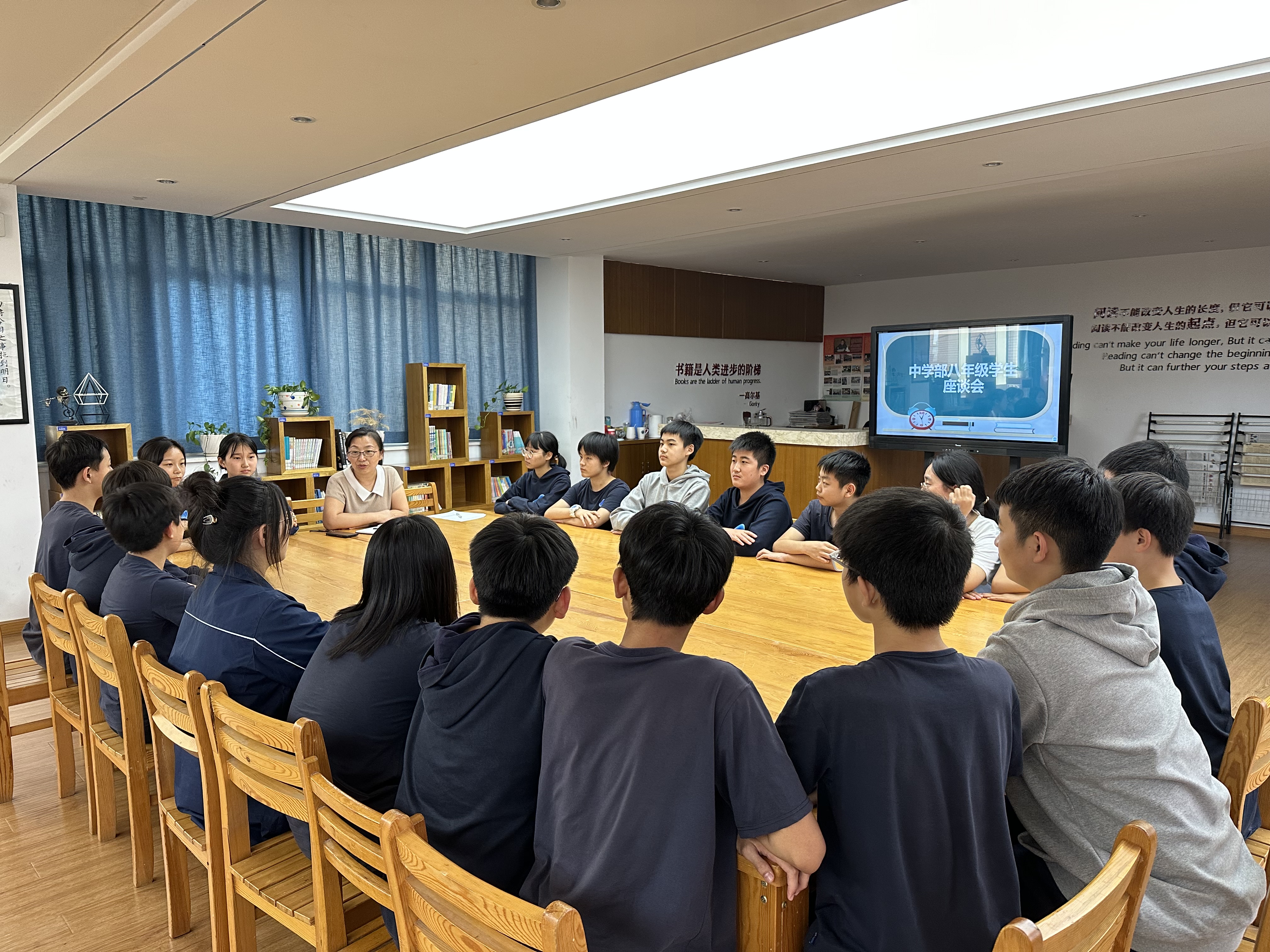此次座谈会为八年级学生构建了和谐的交流平台,促进了学校、老师与学生的沟通,增强了了解,加深了感情,对八年级教学教育和管理工作的提升起到积极的促进作用。