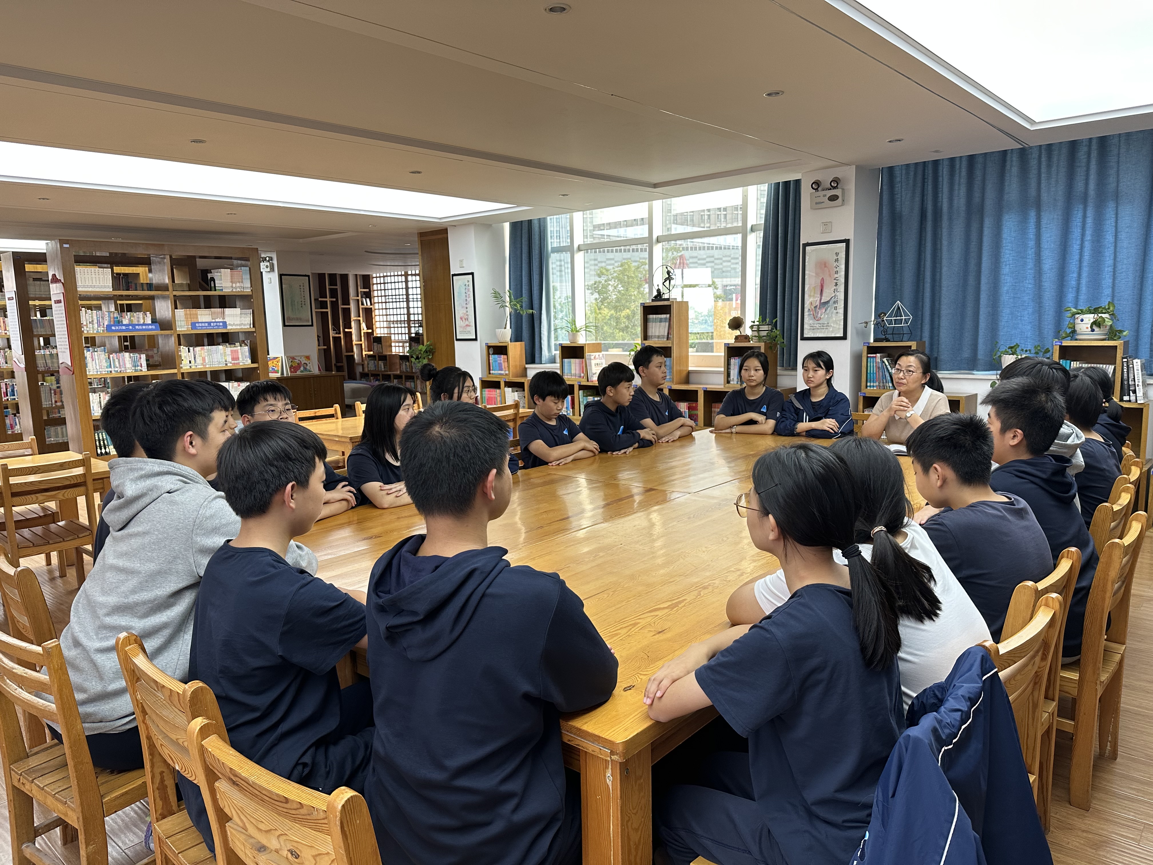 为了解八年级各班学生的学习和生活情况,关注学生心理发展,更好地调整教师教学和学生学习、生活的方式方法,加强学生与老师、学校之间的关系,2022年9月28日下午,学校德育处召开八年级学生座谈会,来自各班级20名学生代表参加了座谈会。德育处满莉副主任和八年级组徐杨老师组织学生在图书馆进行座谈,座谈在平等、轻松、自由、开放的氛围中开展。