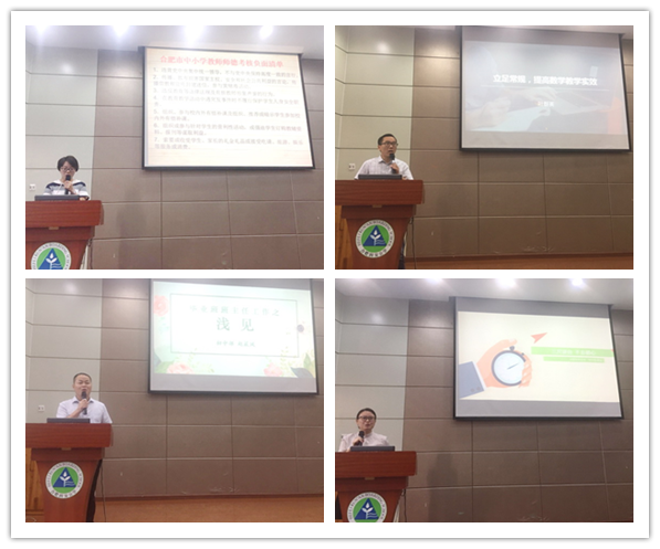 下午的培训会由初中部满莉主任主持。为了更好地促进学部各项规章制度的落实,初中部教学处芮丹丹主任带领全体教师学习了学部关于教师考勤、上课、阅卷、监考、自习、请假、考核等方面的制度和要求。杨校长希望初中部全体教师通过此次制度学习,能进一步提高思想认识,增强遵规守纪的自觉性,在工作中能要严格要求自己,把各项规章制度深入到实际工作中,从而不断提高工作的主动性和能动性并履行好自己的岗位职责。随后,叶群英老师就数学教学工作分享了自己的做法和经验;赵晨风老师分享了自己毕业班班主任工作经验;下午培训会最后,薛云老师以《三尺讲台,不忘初心》为题,详细的介绍了自己过去一年班级管理过程中做法,其中薛老师的班主任工作经验中的“始于梦想,恒于热爱,终于良心”获得与会教师一致认同和赞许。