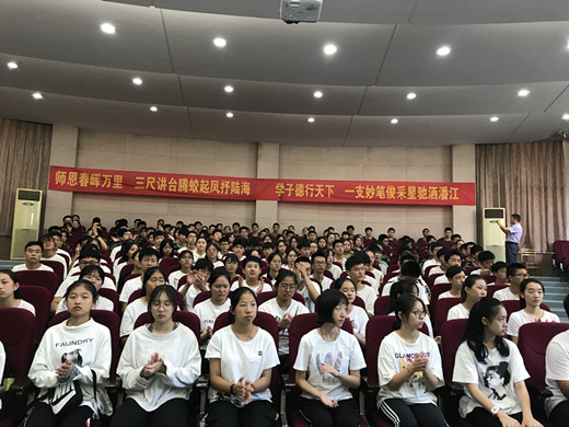 陈永兰老师首先主持‘高一年级“青春励志行”远足拉练动员会暨授旗仪式’,随着一面面班旗的飘扬,全场响起雷鸣般的掌声。随后德育处汪于兵主任向同学们解读了高一年级远足拉练行程安排与要求,让学生们充分认识到这次远足拉练的重要性。