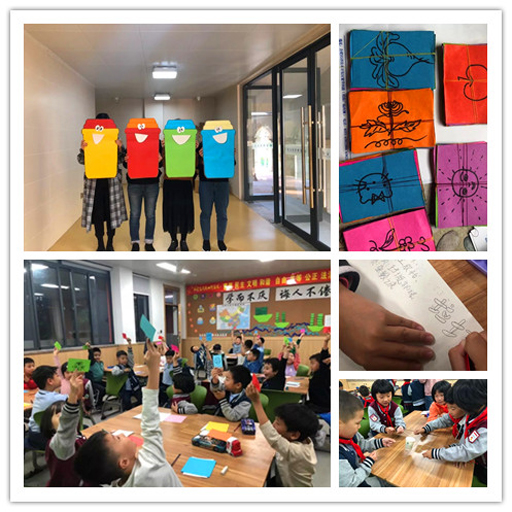 第二周课程进入核心知识“垃圾的四分法”,对此知识的传授,老师们打破传统的讲授模式,而是放手让孩子们制作四种垃圾桶,以及垃圾卡片,并自己亲手粘贴四种垃圾的标识。知识前测时,让孩子们自行投放垃圾卡片,然后对一些有争议的垃圾的属性进行讨论和探究,在查阅资料中,孩子们知道了大棒骨因为难分解属于其他垃圾,面巾纸因为具有水溶性属于其他垃圾,不是所有的电池都是有害垃圾等等。探究学习完核心知识后,后测环节发现每个孩子对身边常见垃圾的属性都能掌握的很好。有些孩子甚至能将大型垃圾拆分分类,他们知道教室里的盆栽枯萎后需要将花盆分在可回收(塑料花盆),或是其它垃圾(陶瓷花盆),土渣分在其它垃圾,枯萎的绿植需要分在厨余垃圾。课前10分钟,每个孩子会收到一张下课通行证,在通行证上回答完检测当堂知识的问题才可有下课资格。