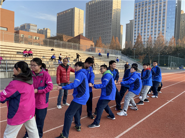 在比赛结束后,九(6)班同学不无骄傲地向其它班的同学们分享胜利的秘笈。“我们拼的不仅是体力还有智力,在比赛前我们就考虑了如何站位,如何发力,这才有最后的胜利。”可见,任何一件事情,想要成功,都离不开精心的准备和发挥团队的力量。