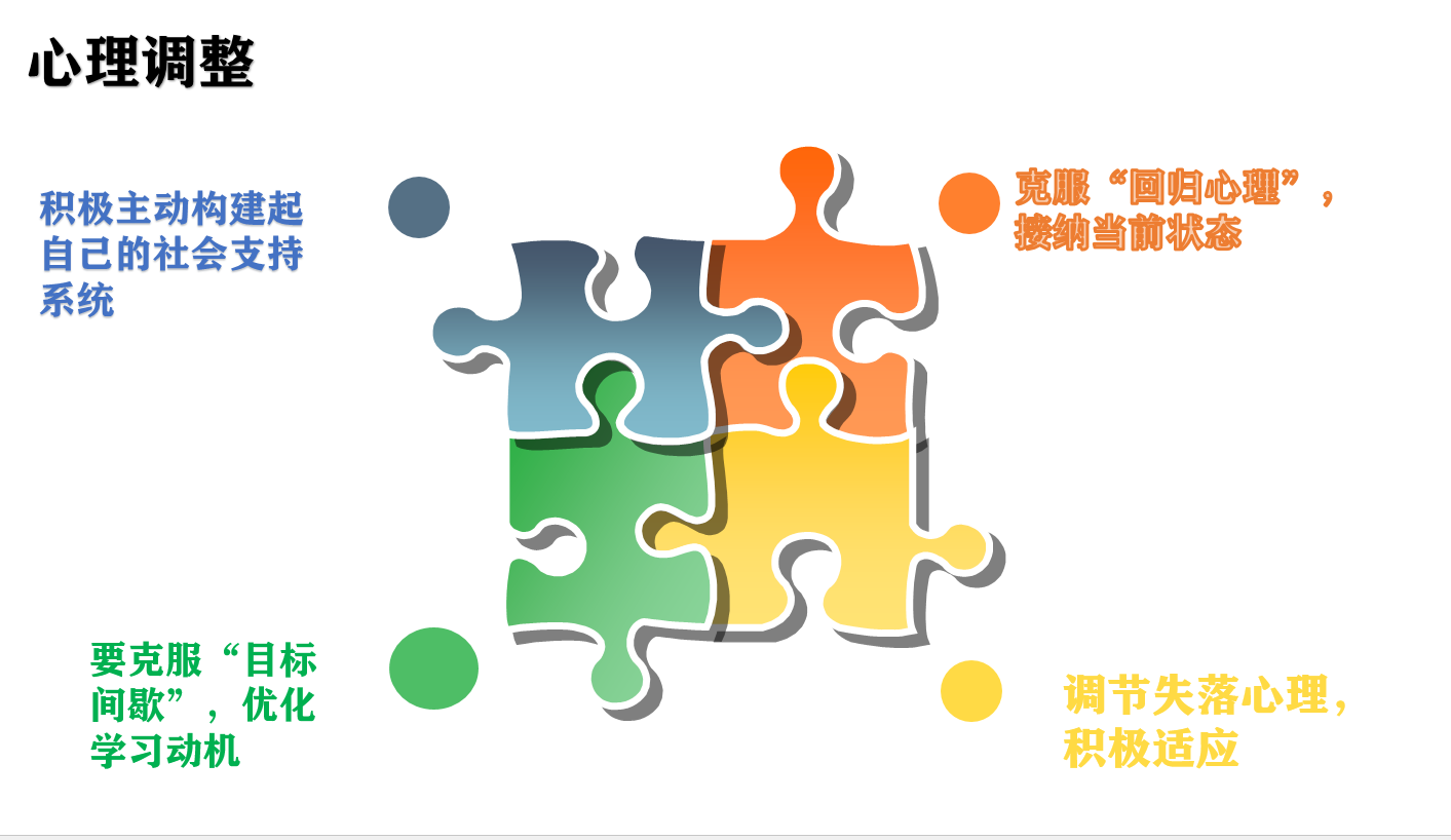 讲座的第二部分,崔老师针对“七年级学生适应问题”展开。在此环节,崔老师还和同学们进行了互动,她请同学们说一说自己上初中后可能面临的挑战或者担忧。在了解同学们担忧的问题之后,崔老师利用三个真实案例,教同学们学会:1、克服“回归心理”,接纳当前状态。2、克服“目标间歇”,优化学习动机。3、调节失落心理,积极适应。4、积极主动构建自己的社会支持系统。在讲座的第三部分,崔老师为同学们提供了适应初中生活的心理锦囊,帮助同学们学习如何进行情绪管理。最后崔老师鼓励七年级各位同学要:面对变化,循序渐;应对变化,定位自我;拥抱变化,主动改变;乐对变化,知己知彼。