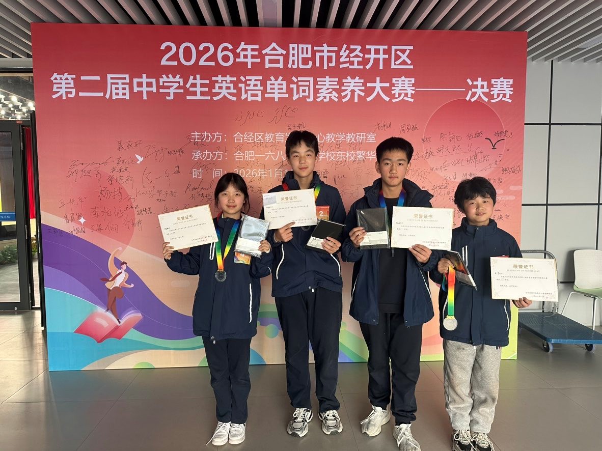 为深入践行《义务教育英语课程标准》精神,夯实学生英语词汇基础,激发英语学习兴趣,提升学生英语综合素养,2026年1月15日,合肥市经开区第二届中学生英语单词素养大赛顺利举办。润安公学初中部英语教研组精心筹备、严格选拔,最终组建七年级代表队(胡钦睿、许筠汐、高宇墨、秦朗)与八年级代表队(张智豪、郑泽奕、吴晓航、高一甲)参赛。两支队伍凭借扎实的词汇功底、出色的临场应变能力及高效的团队协作,在赛事中斩获佳绩,实现历史性突破,充分彰显了我校英语教学的深厚底蕴与学生培养的卓越成效。